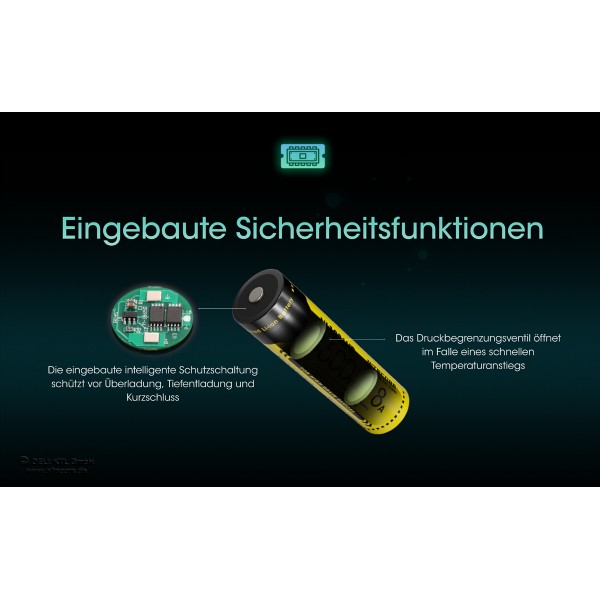 Der Akku ist durch eine Schutzschaltung gegen Überspannung, Tiefentladung und Kurzschluss geschützt.
