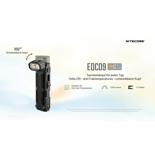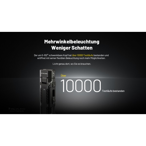 Die Nitecore EDC09 ist ein neues Modell aus der EDC-Familie mit neuem Anwendungschwerpunkt. Der Lampenkopf ist 102 ° abklappbar, der Lampenboden magnetisch; damit ist die EDC09 ein idealer Begleiter für Freizeit, Outdoor und Werkstatt.