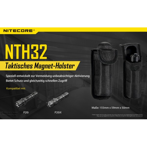 Das Nitecore NTH32 ist ein stabiles Nylon-Formholster mit magnetischem Verschluss. Es verhindert ein unbeabsichtigtes Einschalten Ihrer Taschenlampen.