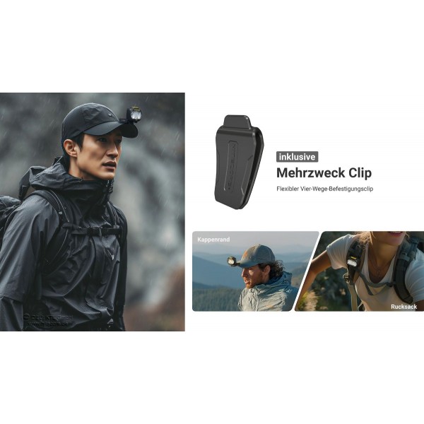 Inklusive wiederaufladbarem HLB1500 Li-Ion-Akku (1.500 mAh) mit USB-C-Ladeanschluss, plus die Möglichkeit, alternativ 3 × AAA-Batterien einzusetzen - für maximale Flexibilität unterwegs.