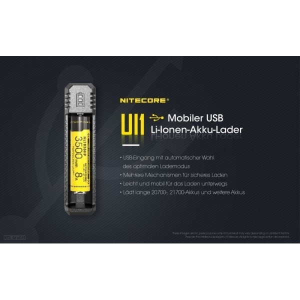 Nitecore UI1, USB Kabel , Bedienungsanleitung in mehreren Sprachen (abgebildete Akkus nicht im Lieferumfang)