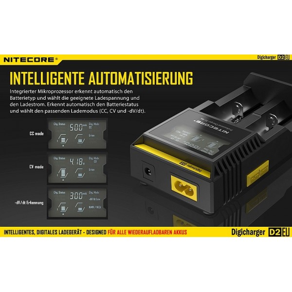 Lieferumfang: NiteCore Digicharger D2EU, 230V Netzkabel