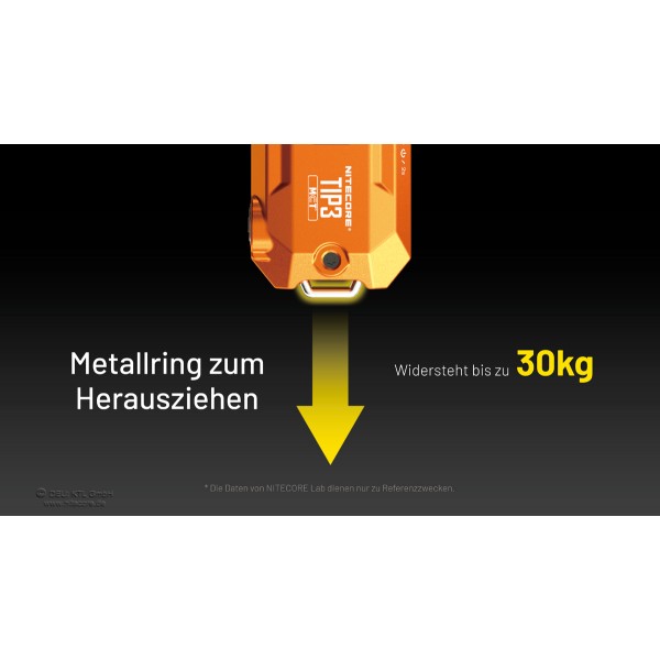 Lieferumfang: Nitecore TIP3 MCT, Schlüsselring, Clip, Bedienungsanleitung
